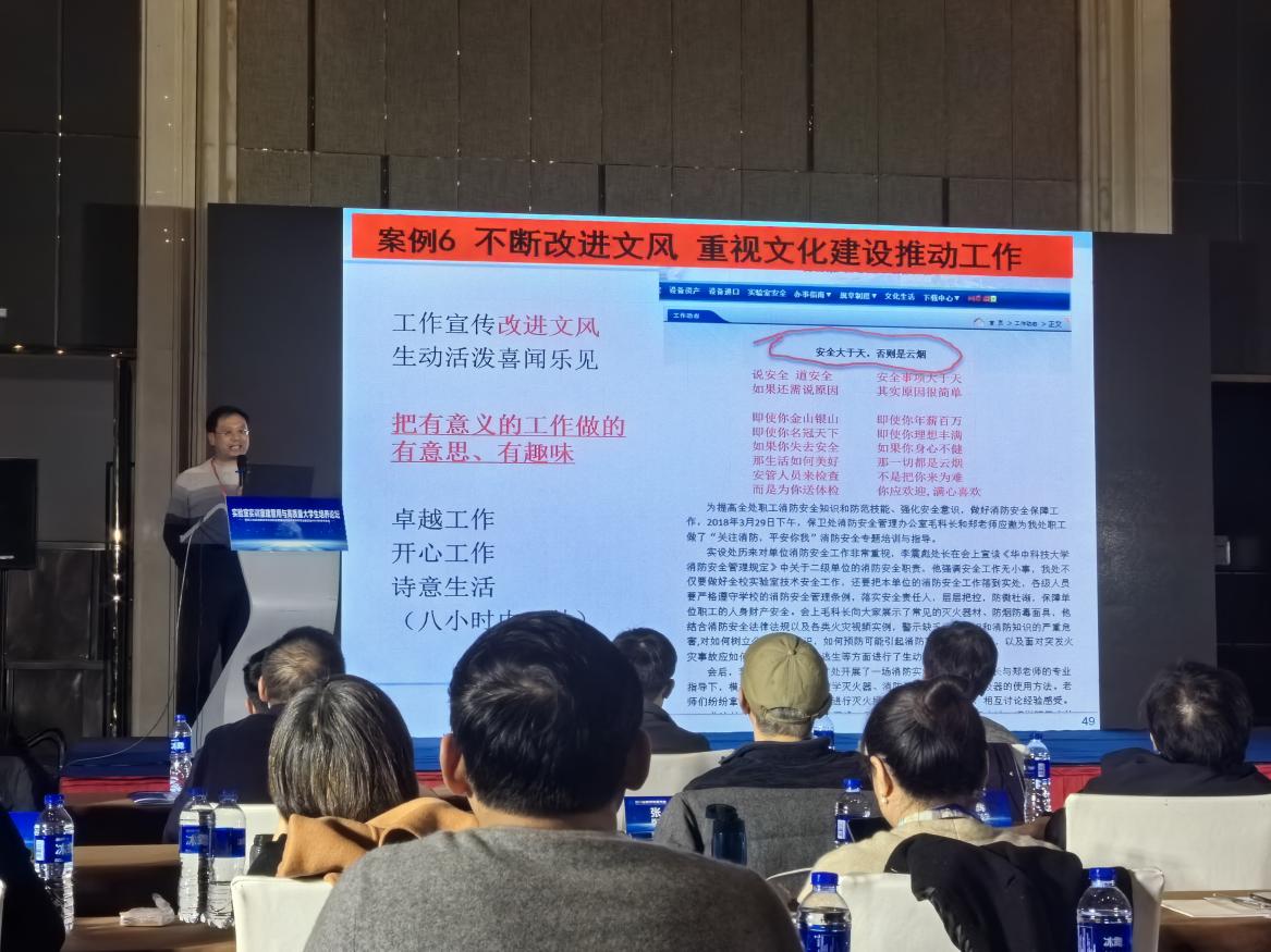12月8日下午1点30分。实验室管理与实验技术研究专业委员会分会场邀请了三位高校实验室管理专家、学者作了主题发言。其中,华中科技大学实验与设备管理处李震彪教授作了《创新思维 卓越工作 诗意生活——关于实验室建设与管理工作的思考与实践》;香港科技大学安全及环境处处长杜武俊博士作了《实验室建设规划的EHS考虑》;电子科技大学国有资产与实验室管理处副处长刘洪宇作了《大型仪器共享与本科实验教学的探索与实践》;西南交通大学资产与实验室管理处副处长闻毓民作了《产教科研融合下交大实验室建设与人才培养新实践》的主题发言。与会教师认真听讲、仔细记录、举一反三,并针对我院实验中心的相关问题进行了讨论,着重将从实验室管理体制、资料收集整体思路、实验室文化建设、实验室与其他职能部门的沟通机制、实验室科学研究、实验室基础建设、实验室安全管理等问题继续加强完善和建设工作。