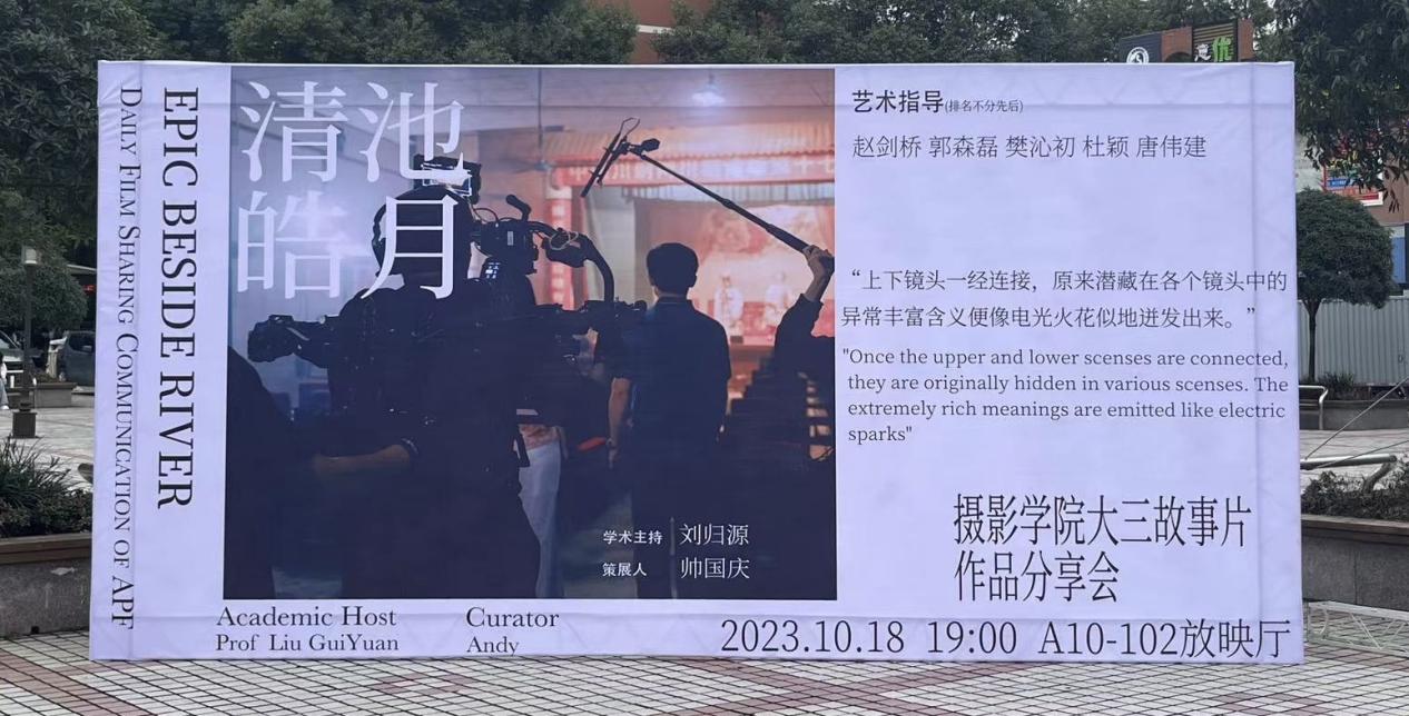 本次分享会的主题是“清池皓月,柚梧成荫”,会上主创团队的老师和同学们向大家讲述了拍摄期间所遇到的困难和挑战,就“拍片预算和实际花销”、“故事片的节奏和细节把控”、“拍摄期间应该如何平衡教学成长和做出完美作品”等方面,解答了台下老师和同学们的提问,为大家提供了宝贵的经验和启示。