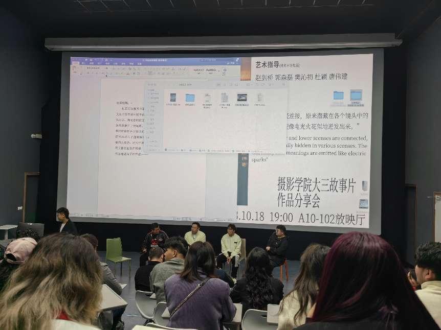 2023年10月18日,摄影学院大三故事片作品分享会在A10教学楼102放映厅举办。本次分享会邀请了左旭舟副校长、李巍副校长、著名学者储殷教授、摄影学院教师们及部分学生出席。